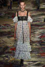 El colorido y el barroquismo siguen siendo la marca personal de Gucci. Este desfile ha sido mágico, destacando prendas de inspiración oriental con grandes dragones, el reflejo de una fantasía exótica.